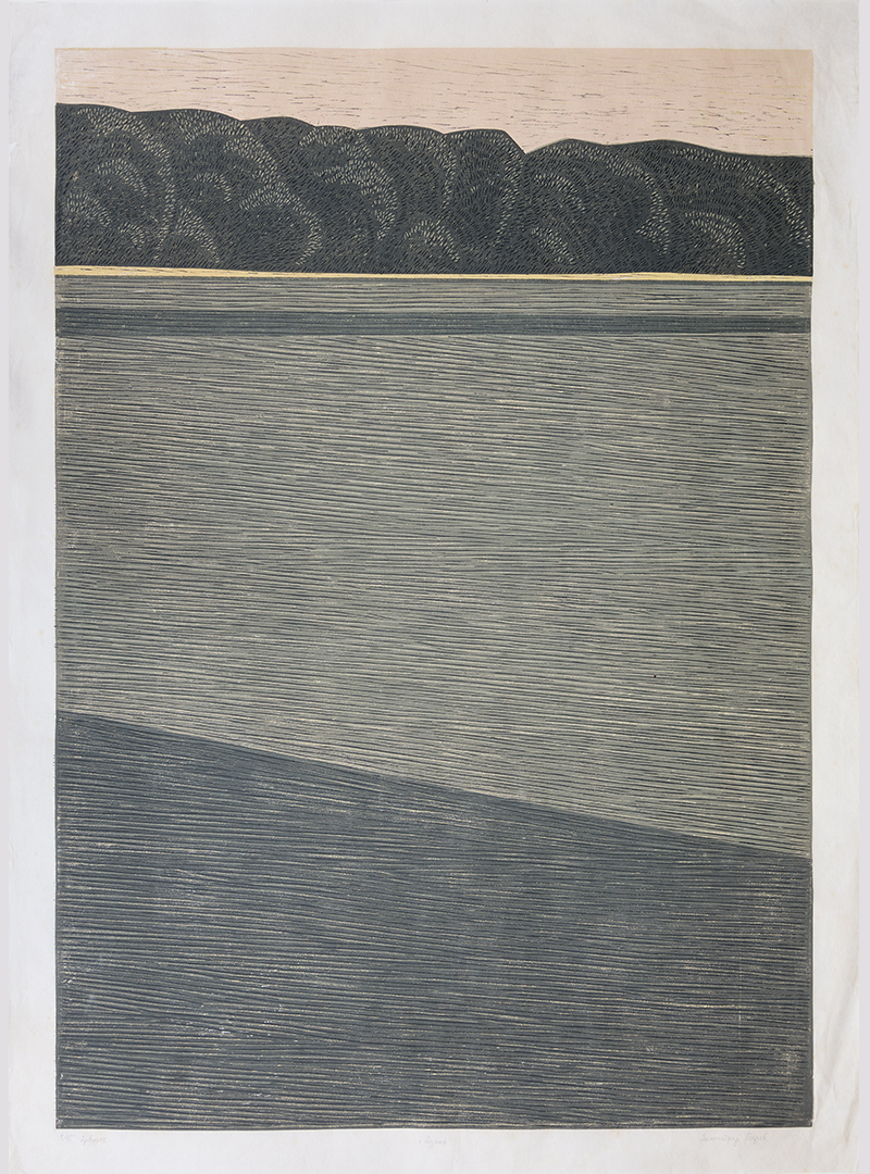 Димитрије Пецић, Предео са Дунава, 2004, дрворез, 111х80 cm
