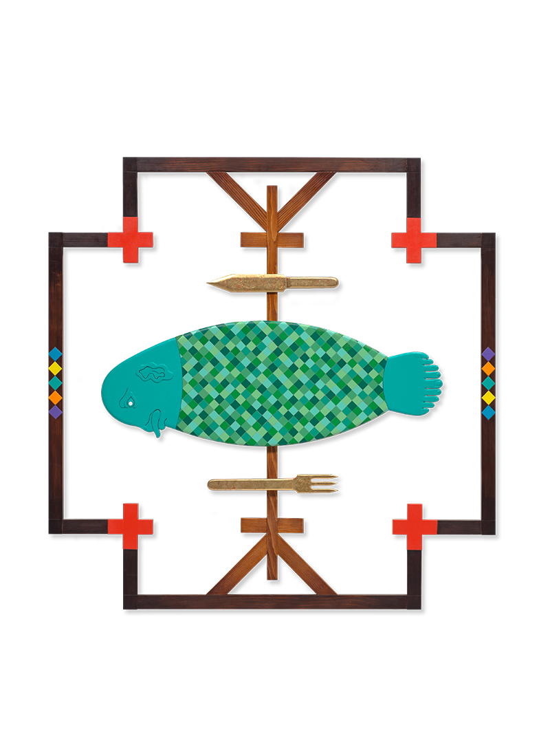 Коста Богдановић, Без назива, 2010, дрво, боја, 64х23х4 cm