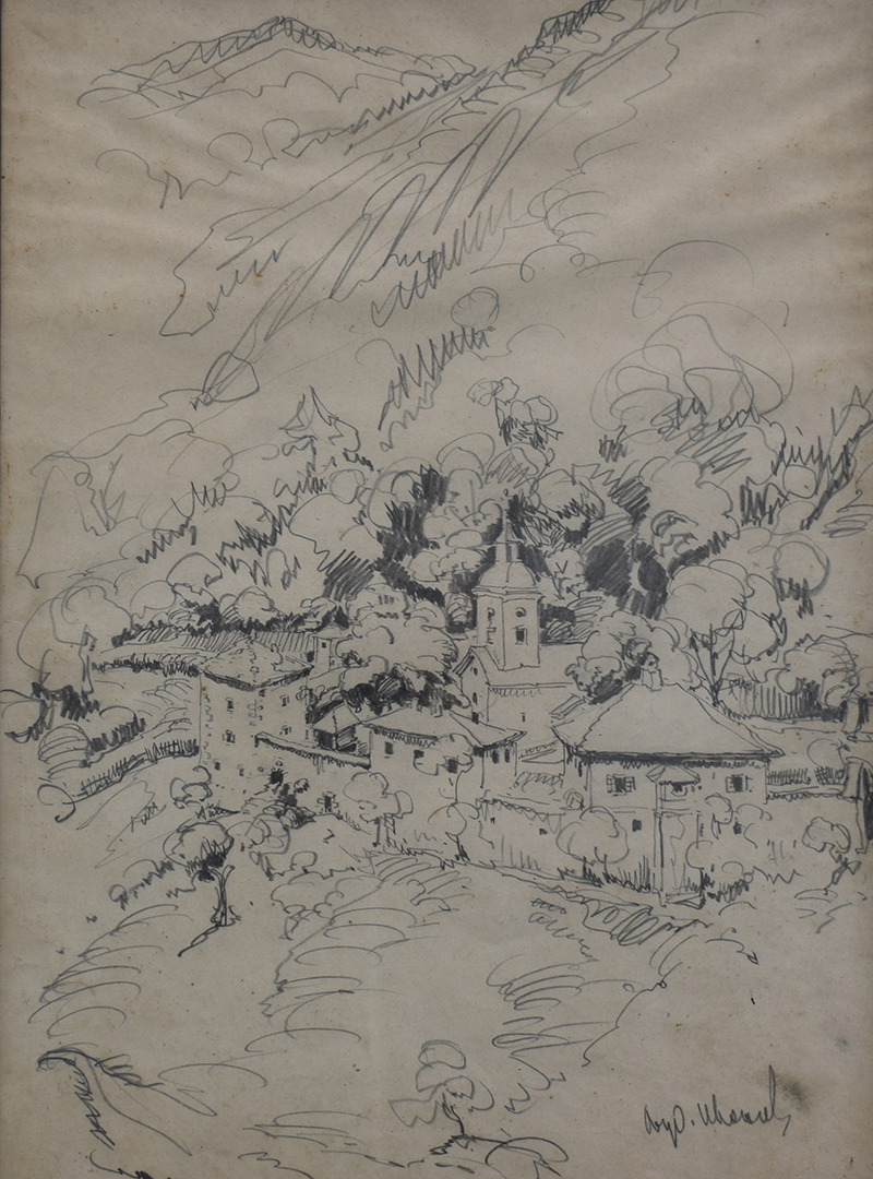 Љубомир Ивановић, Манастир Сретење, 1936, оловка на папиру, 35х24,9 cm