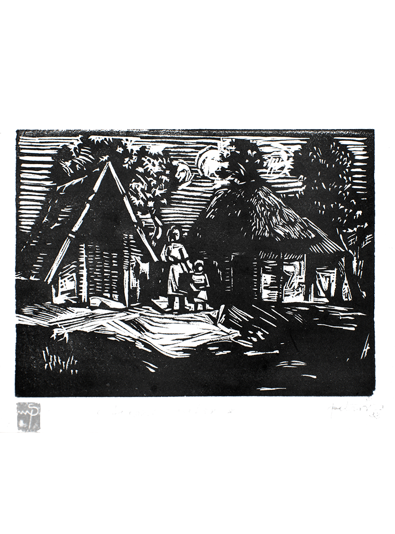 Михаило Петров. Сеоски мотив, 1933, дрворез, 13х18cm